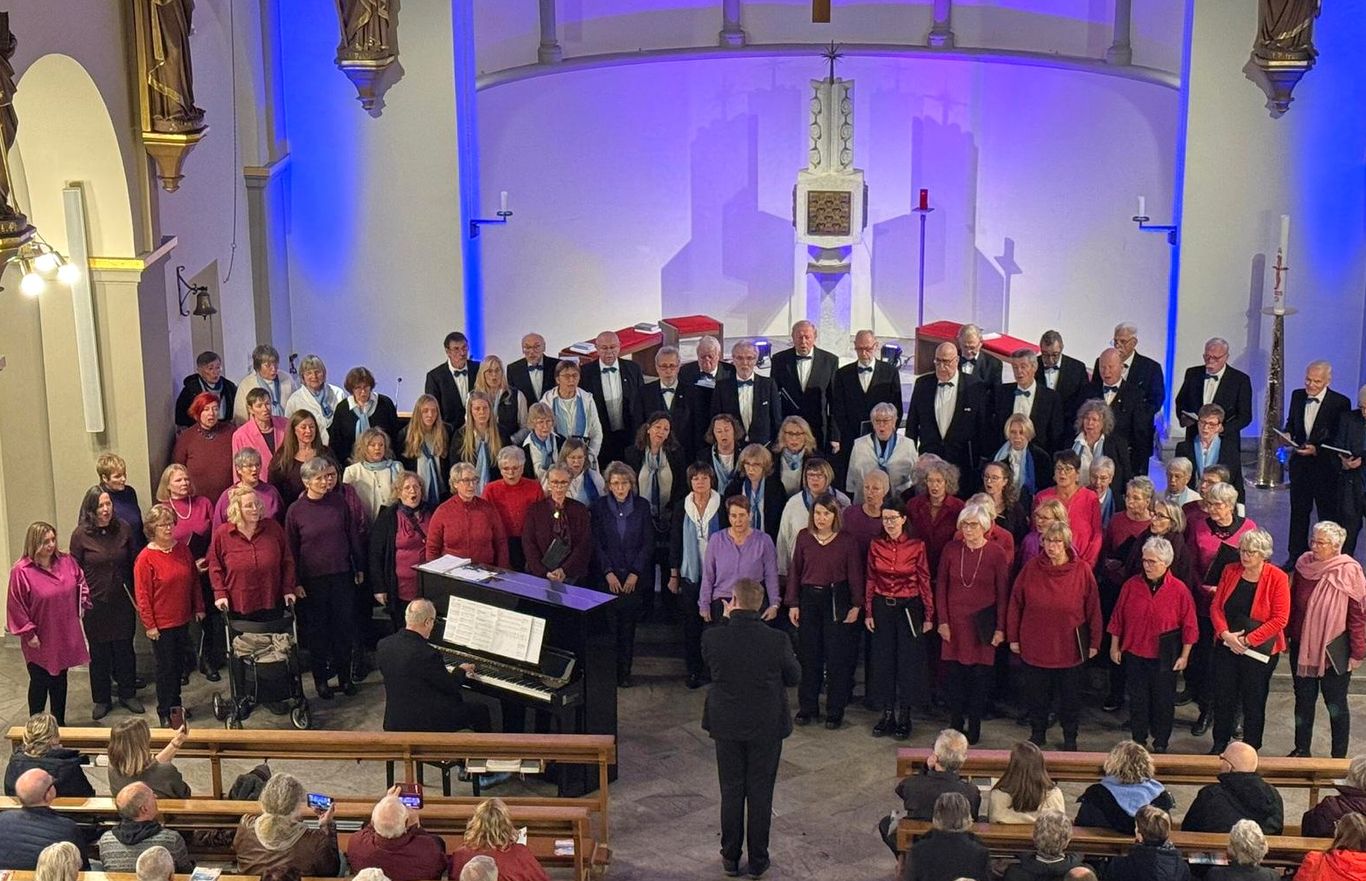 Unter Gesamtleitung von Musikdirektor Jochem Röttig und mit musikalischer Unterstützung durch den Pianisten Frank Hoppe zeigten der Männer- und der Frauenchor mit einem bunten Potpourri aus traditionellen Chorliedern, „kölschen Tön“ und einem Udo-Jürgens-Medley die beachtliche Bandbreite ihres Könnens.